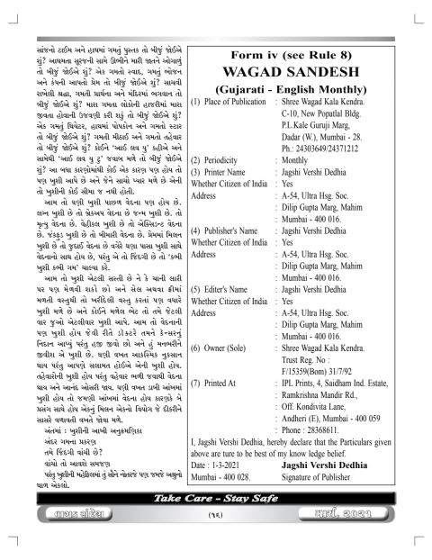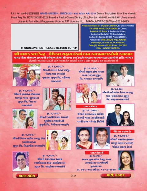 વાગડ સંદેશઃ માર્ચ- ૨૦૨૧