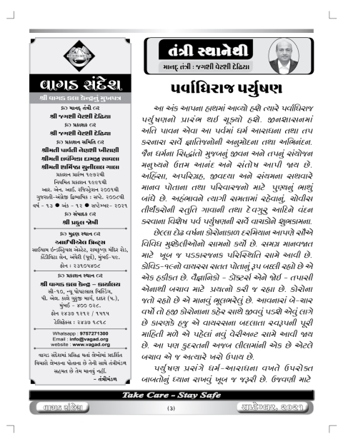 વાગડ સંદેશઃ સપ્ટેમ્બર ૨૦૨૧