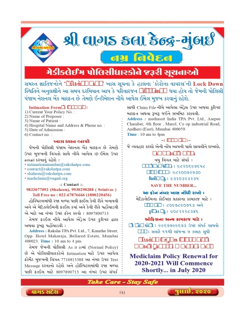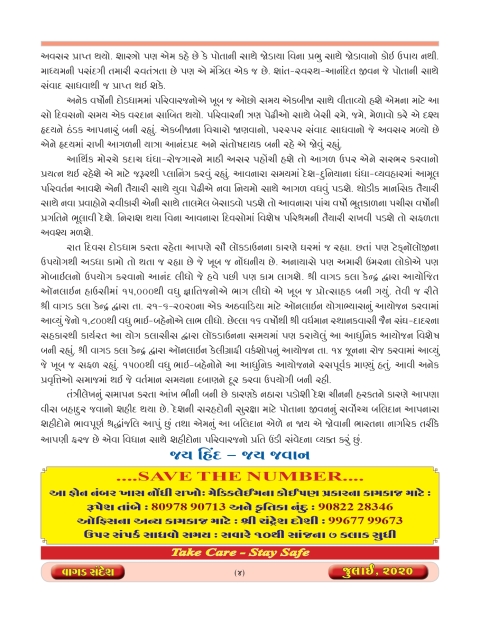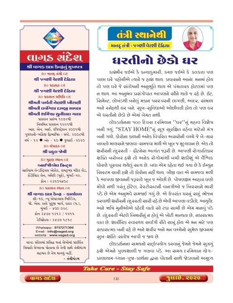 વાગડ સંદેશઃ જુલાઈ ૨૦૨૦