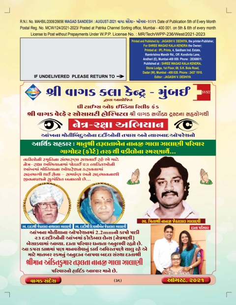 વાગડ સંદેશઃ ઓગસ્ટ ૨૦૨૧