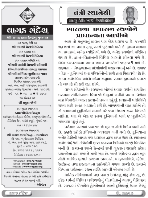 વાગડ સંદેશઃ મે ૨૦૧૯