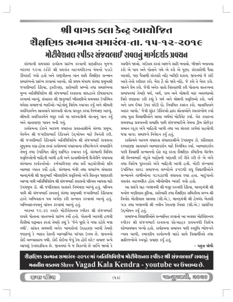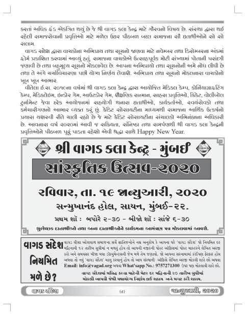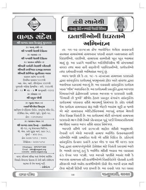 વાગડ સંદેશઃ જાન્યુઆરી ૨૦૨૦