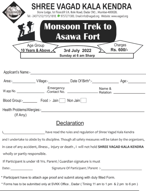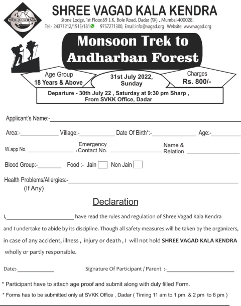 Forms has to be Submitted Only at SVKK Office, Dadar (Timing 11am to 1pm & 2pm to 6pm)