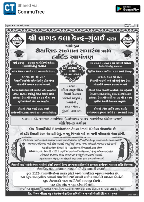 વિદ્યાર્થી અને તેમના વાલીઓ તેમજ સૌ જ્ઞાતિજનોને બન્ને કાર્યક્રમમાં સમયસર પધારવા નમ્ર અનુરોધ.