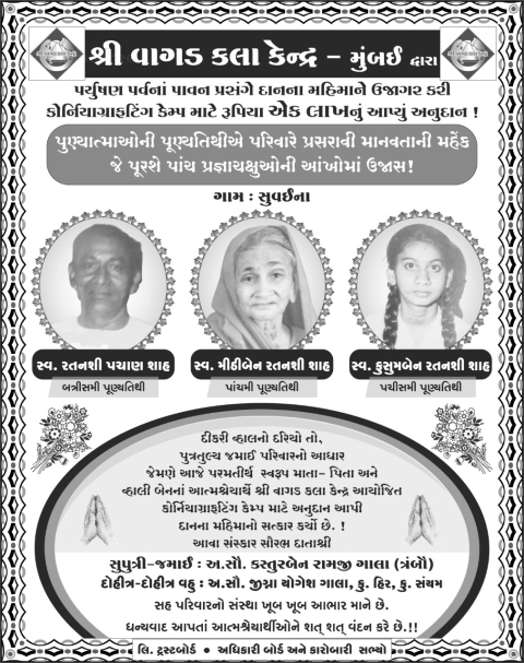 પુણ્યાત્માઓની પૂણ્યતિથીએ પરિવારે પ્રસરાવી માનવતાની મહેંક જે પૂરશે પાંચ પ્રજ્ઞાચક્ષુઓની આંખોમાં ઉજાસ !