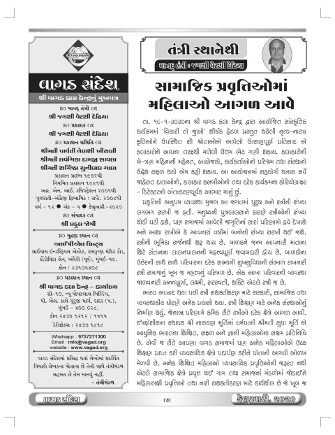 વાગડ સંદેશઃ ફેબ્રુઆરી ૨૦૨૦